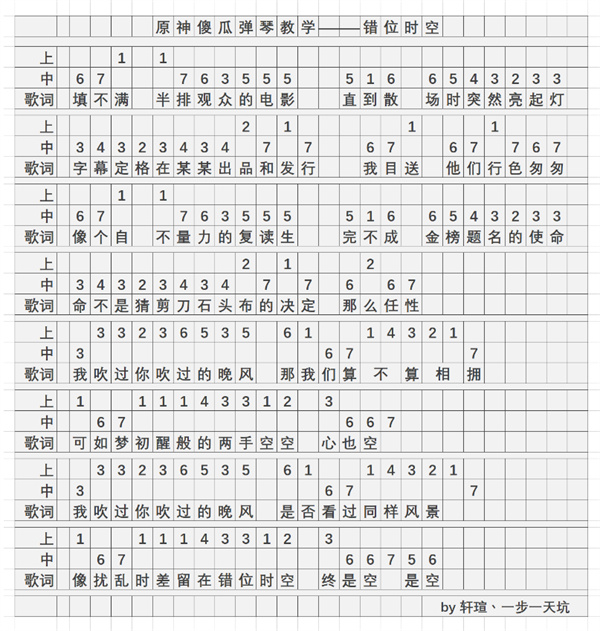 原神错位时空乐谱