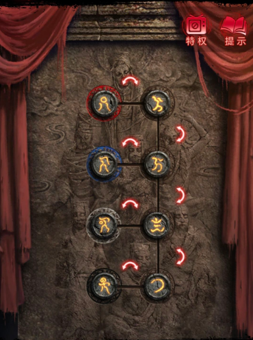 3、然后根据这个不同的颜色来调整石门上的图案,如下图左侧这一列的顺序: