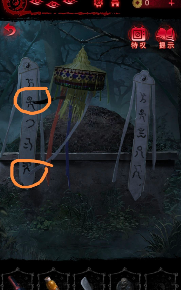 1、在之前的解密可以获得鱼幡,将鱼幡挂在坟头树枝的钩子上;