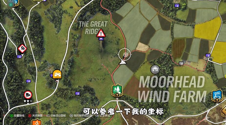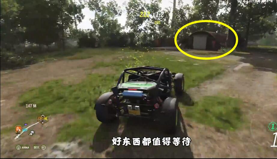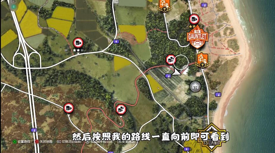 位置在地图的最右边,推荐站在果园测速区间,向前走;