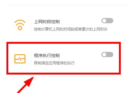 2、找到“程序执行控制”模块,打开按钮。