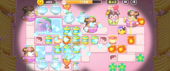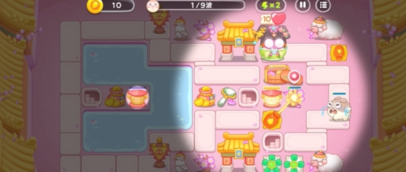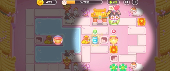 在闯关的时候,由于迷雾的存在,所以我们只有在防止炮台之后才能够获得附近的视野,并且地图中还有灯笼的存在,将地图上的灯笼全部点亮之后,就可以继续补充地图中央的电池并升级,这样也能够更加轻松地通过关卡。