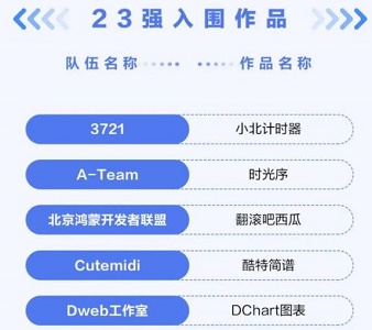 3、然后是之前开发者联盟的比赛,入围的23强的23个应用都会成为鸿蒙系统的专属app。