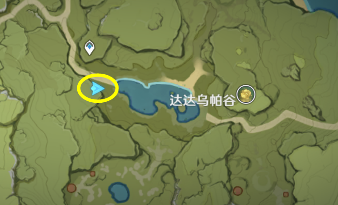1、传送到达达乌帕谷并来到图上的位置。注意这是位于山崖上面,不要跑到下面去了。