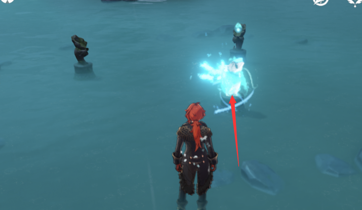 4、触碰到仙灵之后,它会朝着雕像飞过去。我们一直跟着仙灵来到雕像前面,这样就完成了。