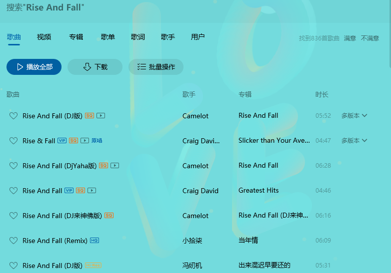 歌名:Rise And Fall