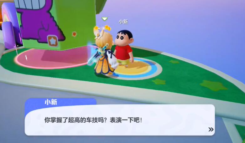 3、接着玩家与小新进行对话,小新就会给我们一辆脚踏车了。