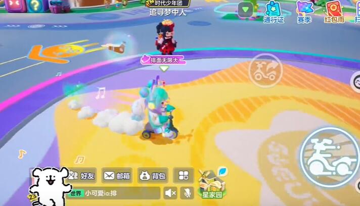 4、玩家可以驾驶脚踏车在元梦广场上骑乘,并且还有加速技能。